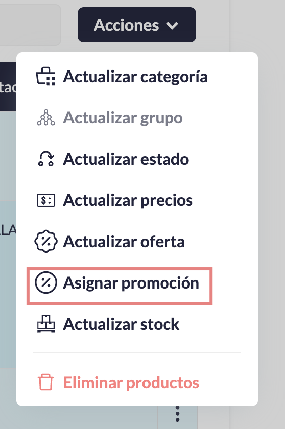 Esto te permite asociar promociones directamente mientras configurás el catálogo.