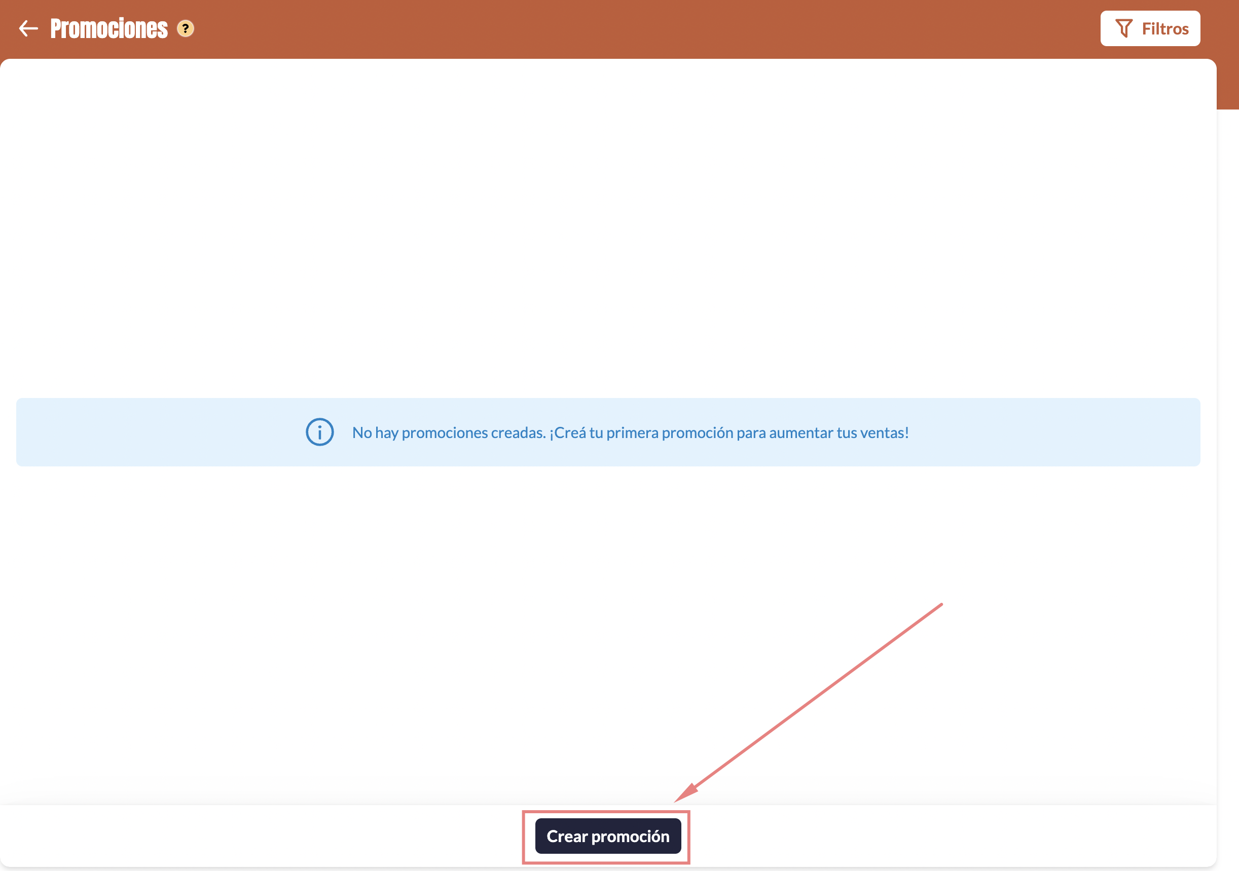 Si todavía no tenés promociones creadas, verás el mensaje inicial con el botón Crear promoción.