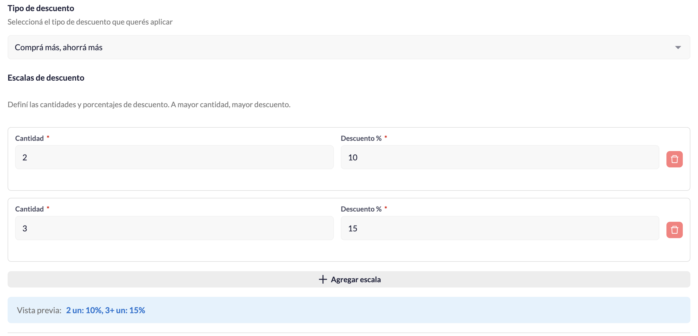 En el campo Tipo de descuento, seleccioná una de estas opciones: